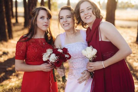 A. うん。いつも。でもお互いの好みについて議論してる。例えば、(上の写真の)ウェディングドレスを着た姉(妹)?私は彼女が一番可愛いと思う。でもショートヘアの姉(妹)が一番優しい目と笑顔をしてる。意見が一致したことは一度もないけど。